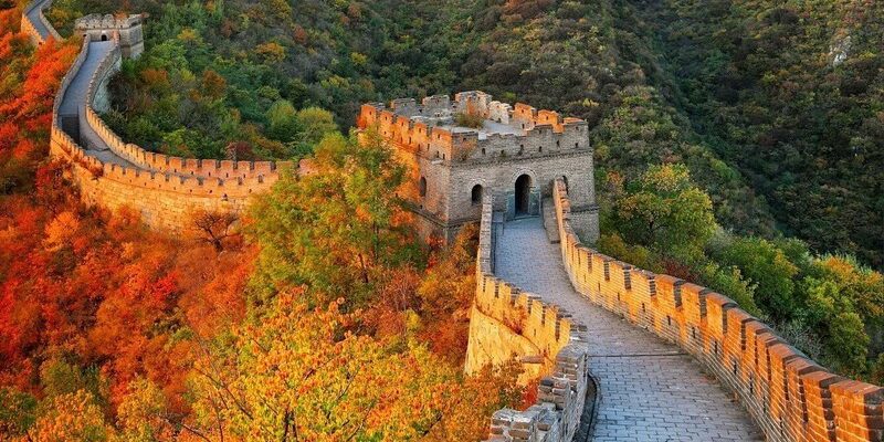 • Vạn Lý Trường Thành: Cung đường trải dài vô tận với hai bên là rừng phong rực đỏ, tạo nên bức tranh thiên nhiên hùng vĩ.